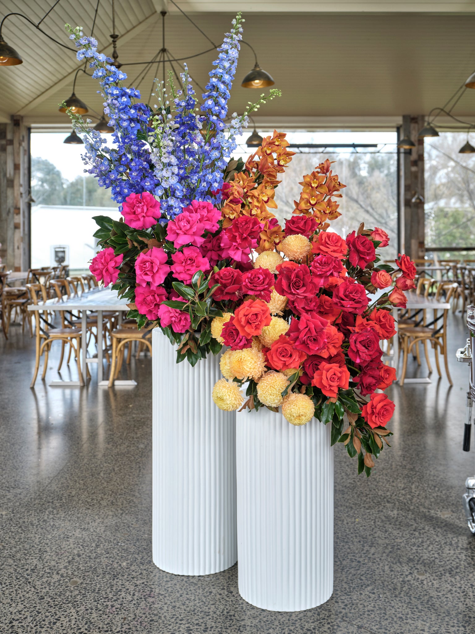 The tall and elegant design makes it a striking tribute for funeral or memorial services, placed beside the casket or throughout the service space. The vibrant colours offer a heartfelt reminder of the brightness your loved one brought into the lives of others.